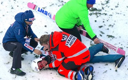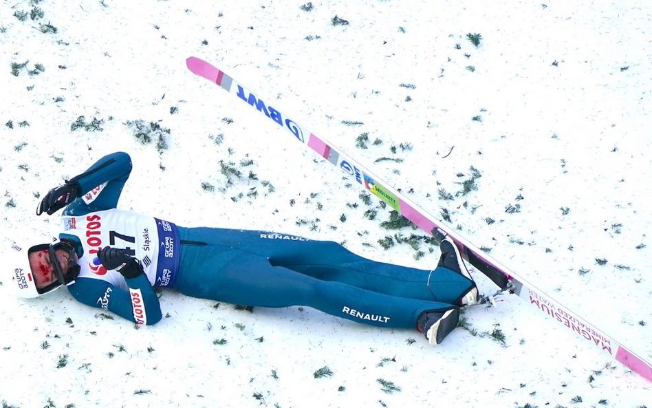 Żyła skoczył 119,5 metra, niestety przy lądowaniu odjechała mu narta. Upadł i przez kilka minut nie był w stanie się podnieść. Kiedy zdjął kask, okazało się, że ma zakrwawioną twarz. Ma rozbity łuk brwiowy i rozciętą wargę.