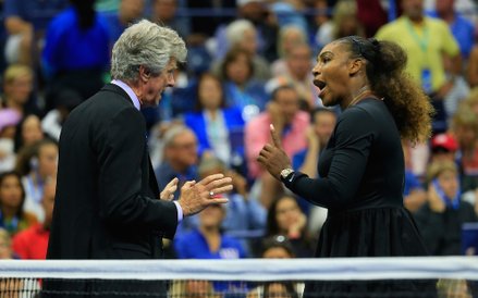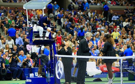 Ten finał przejdzie jednak do historii nie tylko z tego powodu. W drugim secie wybuchła wielka awantura, Serena Williams nazwała jednego z najbardziej znanych sędziów, Portugalczyka Carlosa Ramosa kłamcą i złodziejem, po tym jak najpierw dał jej ostrzeżenie za niedozwolone porozumiewanie się z trenerem (coaching, przy stanie 1:0 dla Japonki), potem ukarał odebraniem jednego punktu za złamanie rakiety, a następnie odebraniem gema za werbalne ekscesy (co sprawiło, że prowadzenie Osaki z 4:3 zwiększyło się do 5:3).